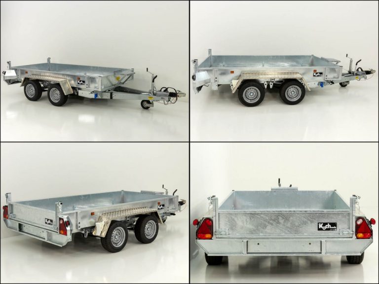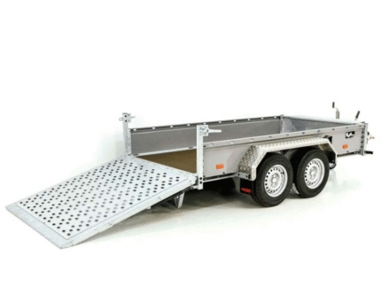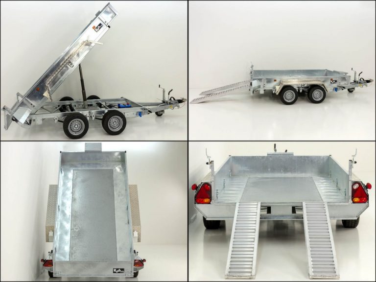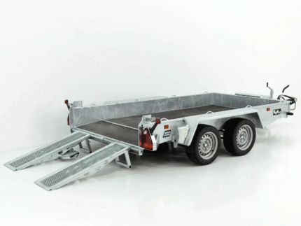 • Reboques porta-máquinas e basculantes de concepção profissional! Bomba elétrica com bateria, carregador integrado e controle remoto com fio