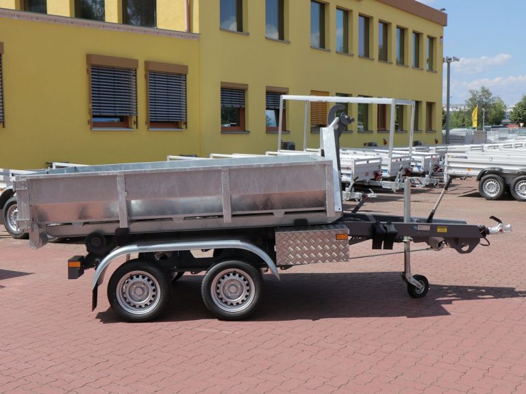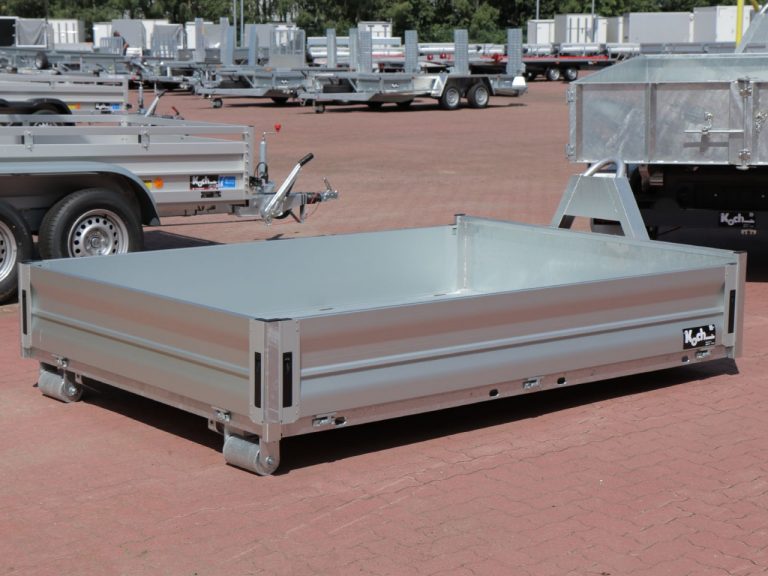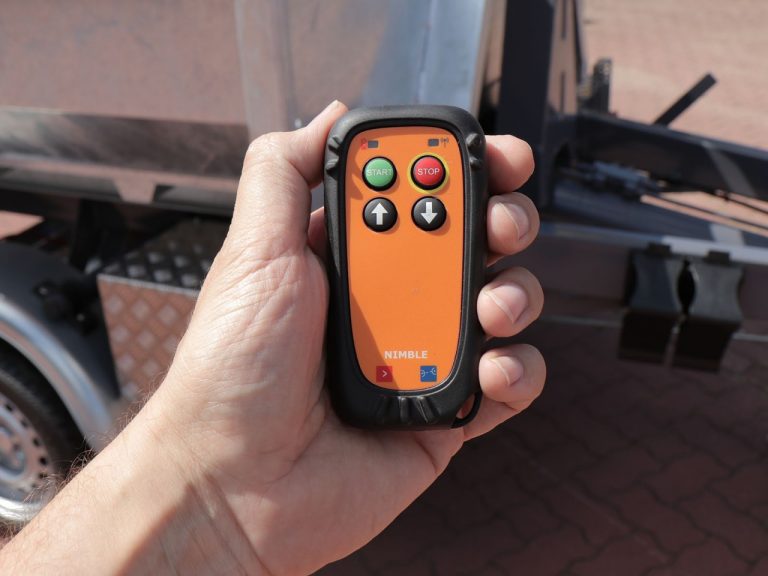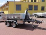 Caçamba removível com reboque de braço!, caçamba removível de um nível, roda jockey automática reforçada, comando eletro-hidráulico do braço com telecomando por rádio, cabo de carregamento para bateria 12 V 155 Ah com tomada, chassi pintado em cinza RAL 7015
