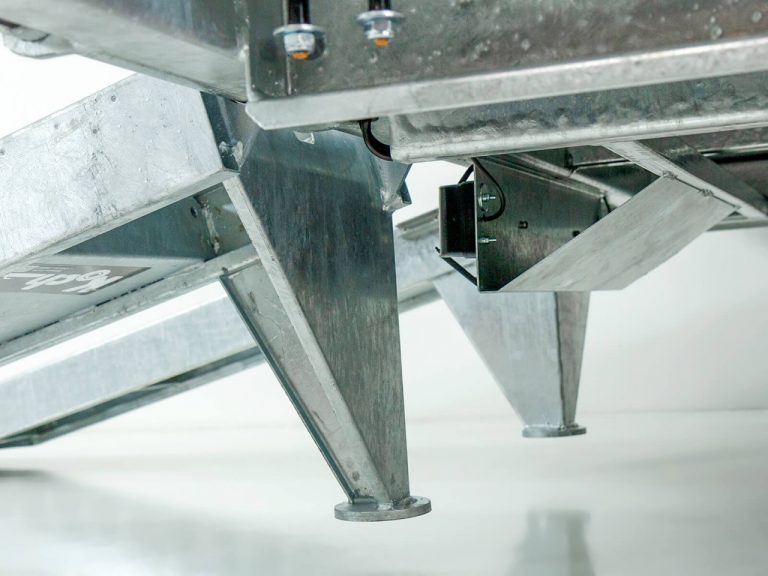 Reboque porta-troncos Vezeko de capacidade muito elevada, equipado com um chassi tubular soldado extremamente estável e totalmente galvanizado a quente
