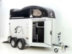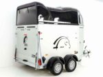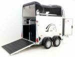 Este van é ideal para transportar 2 cavalos com segurança e conforto, combinando materiais de alta qualidade (alumínio, polietileno) com funcionalidades práticas como portão orientável, divisória removível e sistema de roda jockey automático.