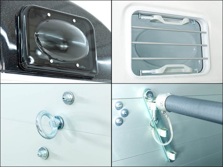 • Desbloqueio anti-pânico, barras dianteiras e traseiras ajustáveis em três posições
